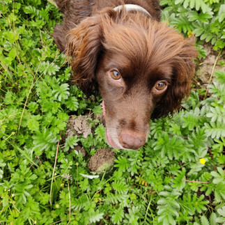 B - Bash 'the swamp monster'. Bash is determined to find all the smelly tennis balls around the vineyard but mainly from the pond where he put them in the first place - and he's very good at it! You know when he's found one as you smell it before you see it! The one in the picture actually had worms on it!